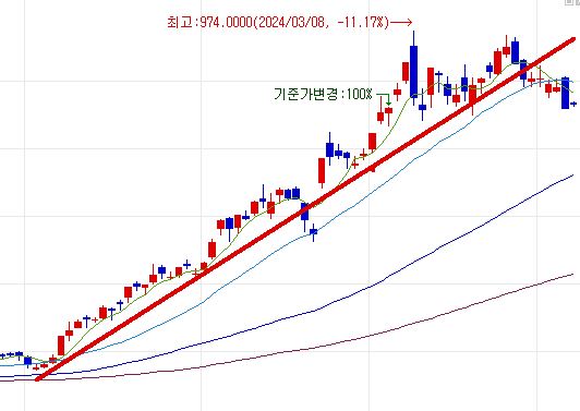 위 차트를 확대해 보시면 빨간 추세선을 따라
